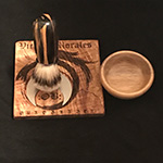 Featuring Silver tipped Badger hair with custom handles. Shaving Brush sets include a stand, travel tube and a wooden bowl customized for a complimentary bar of shaving soap!!!!. Items are boxed with a lovely wood base.